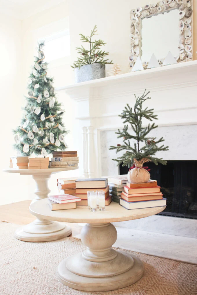 Introduce rustic charm with birch bark accents and wood slices. Craft candle holders, vases, or even miniature Christmas trees using birch bark. The neutral tones of this material add a touch of woodland sophistication to your holiday decor on your mantles, console table, or coffee table.