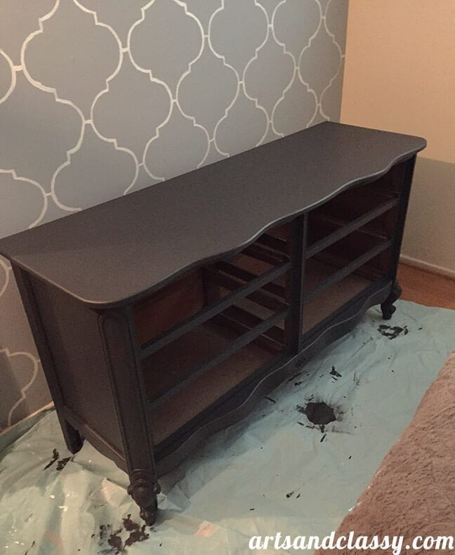 I painted the dresser with my “Night Club” paint. A couple coats worked great.