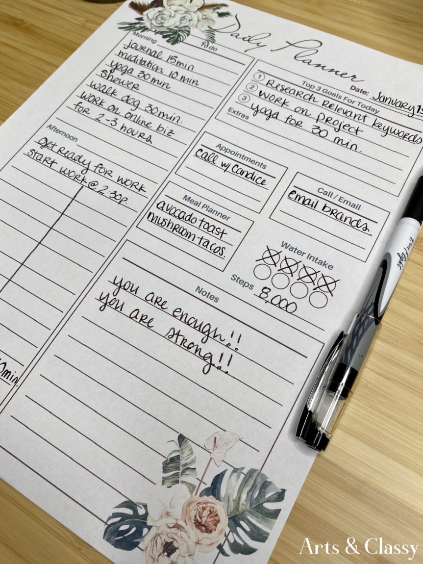 Set your timer again for 5-20 minutes (this depends on how much time or how detailed you are). You complete another brain dump of what you would like to accomplish. You can do this on the back of your free worksheets, OR you can purchase the Manifest Printable Planner for a small fee!