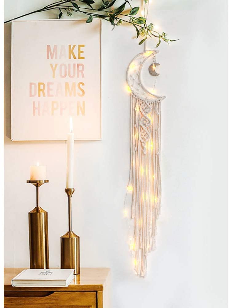 Macrame Woven Wall Hanging Moon Dream Catcher – Macrame Wall Hanging is made of 100% Pure cotton cord, without artificial ingredients or chemicals. This cute and chunky macrame can make a big difference in any space.