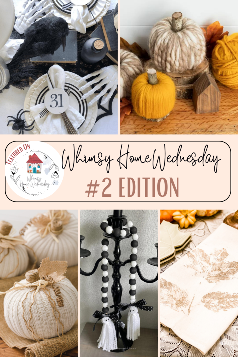 Welcome to the Whimsy Home Wednesday Linky Party. Today the hosts and I are sharing a few of our favorite projects we have done plus the FIVE featured posts from Whimsy Home Wednesday No. 1 – Whimsical Halloween Home.